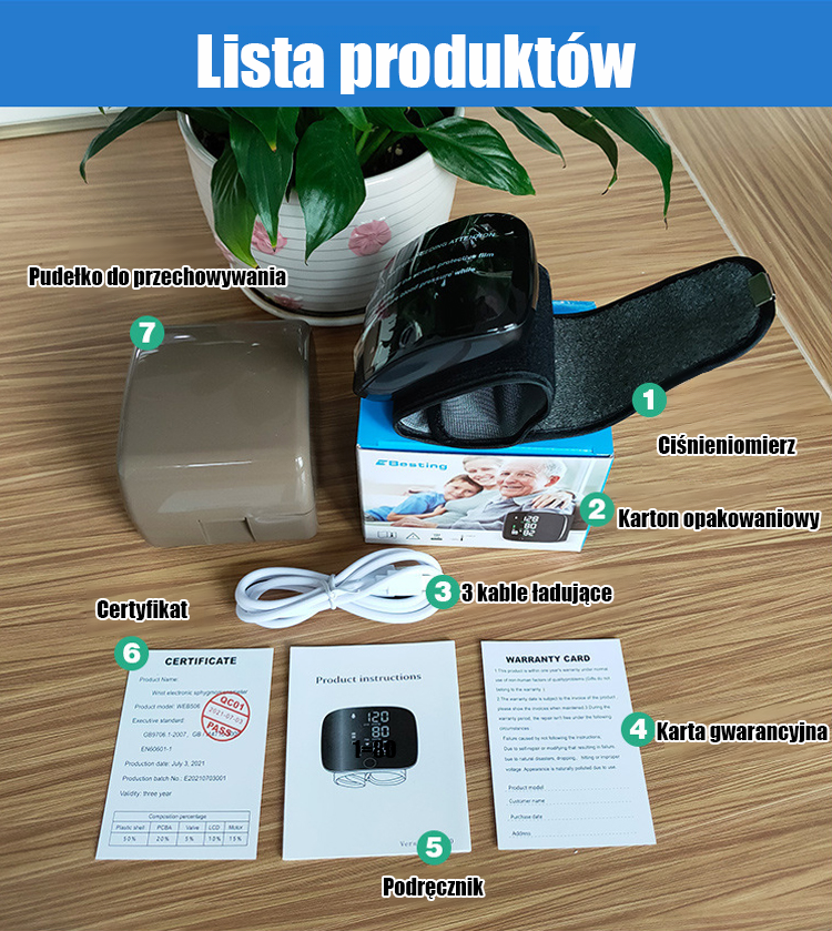 ✅ Zatwierdzone przez FDA, CE i SGS, dokładność pomiaru ciśnienia krwi w zakresie ±3 mmHg, dokładność pomiaru pulsu w zakresie ±5%.