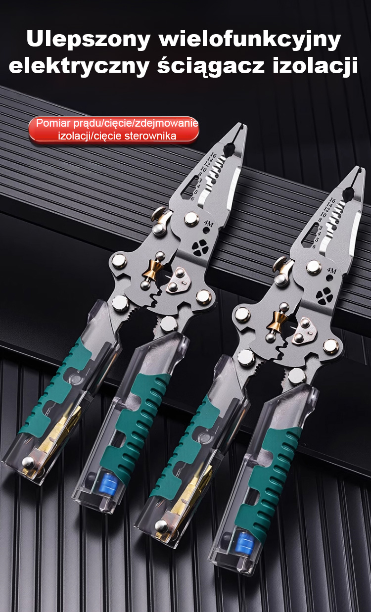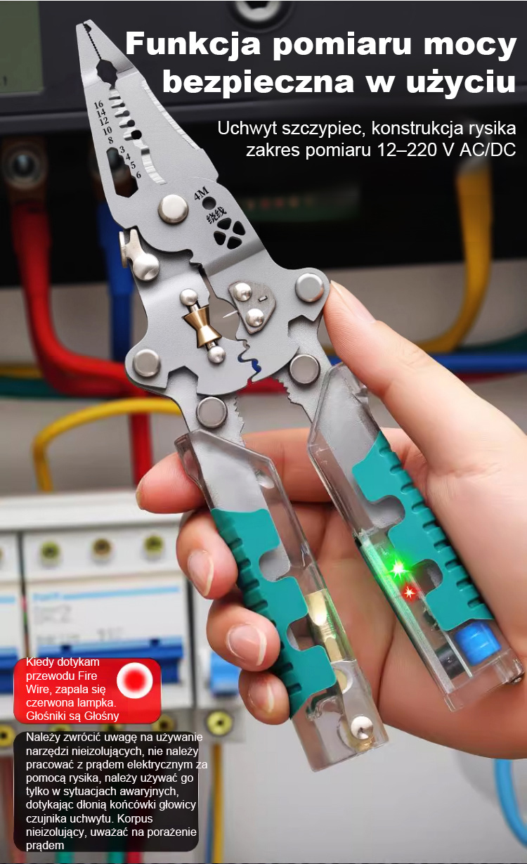 SEESE 10 w 1 – narzędzie do ściągania izolacji i skręcania przewodów, szczypce z testerem napięcia, nożyczki do kabli, wykrywanie napięcia od 12 V do 250 V (pod napięciem, bez napięcia, przewód pod napięciem), prąd przemienny i stały, sygnały dźwiękowe i