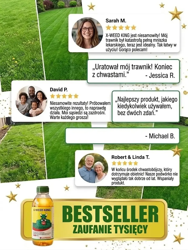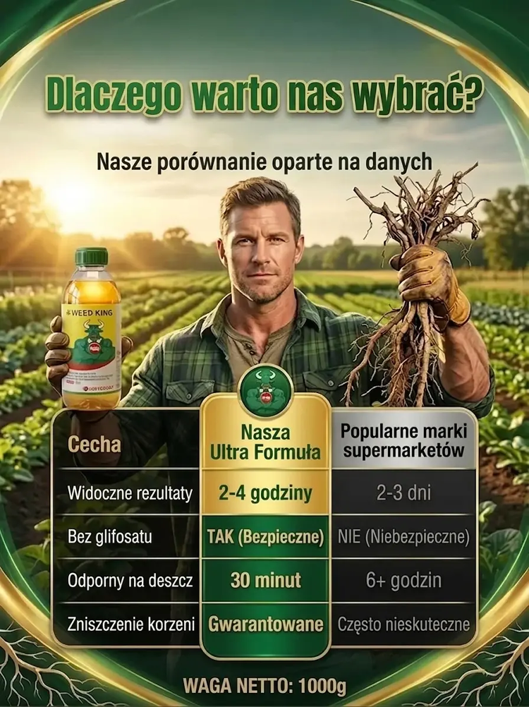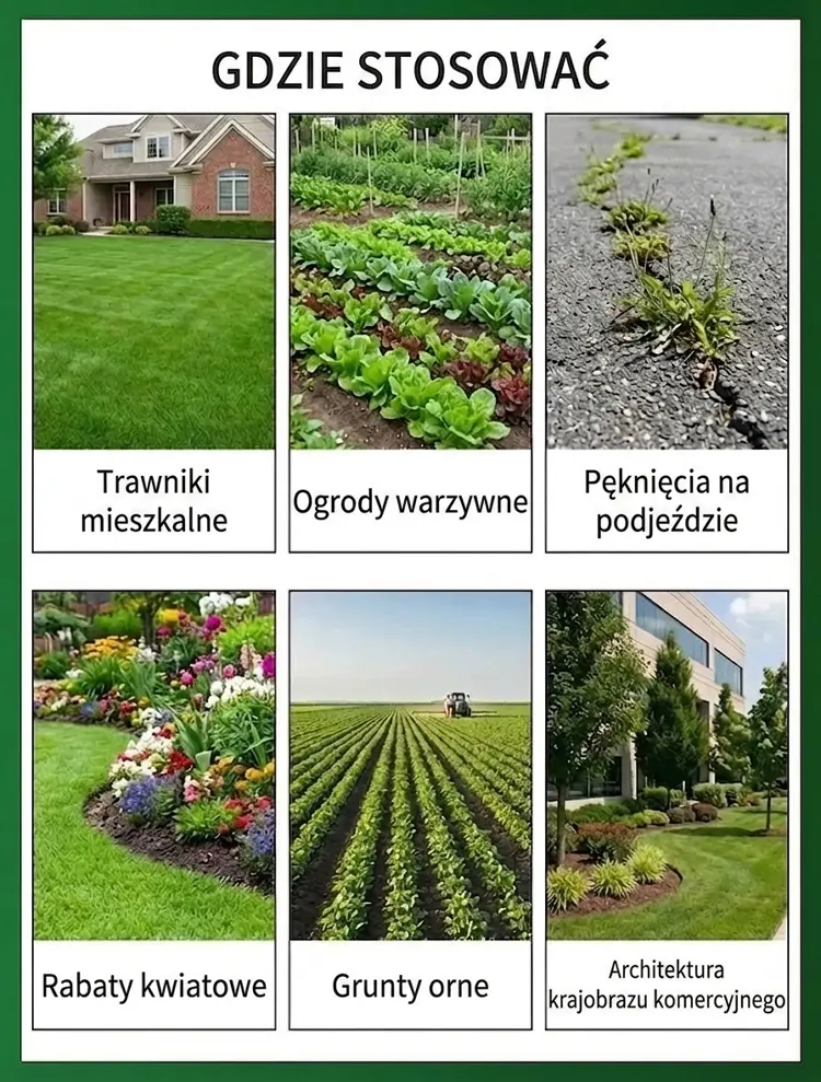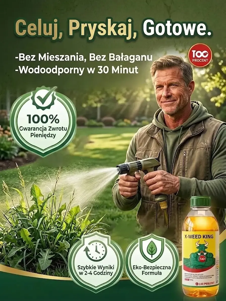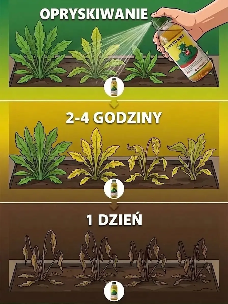 ✅ Posiada certyfikat Niemieckiego Federalnego Urzędu Rolnictwa i Żywności (BLE), spełnia unijne normy dotyczące organicznych środków ochrony roślin w 99% ulega biodegradacji i jest nieszkodliwy dla pożytecznych owadów, takich jak pszczoły czy motyle. Nie musisz się martwić szkodliwymi pozostałościami, nawet jeśli Twój pies, kot lub dzieci bawią się na trawniku.✅ Działa bezpośrednio na korzenie chwastów: po oprysku chwasty żółkną już po 24 godzinach, a efekt utrzymuje się nawet do trzech miesięcy – dzięki temu unikniesz uciążliwego schylania się i wielokrotnego usuwania chwastów.✅ Działa wyłącznie na chwasty i nie uszkadza Twoich roślin. Możesz go bez obaw stosować w warzywniku, na rabatach kwiatowych oraz na trawniku.