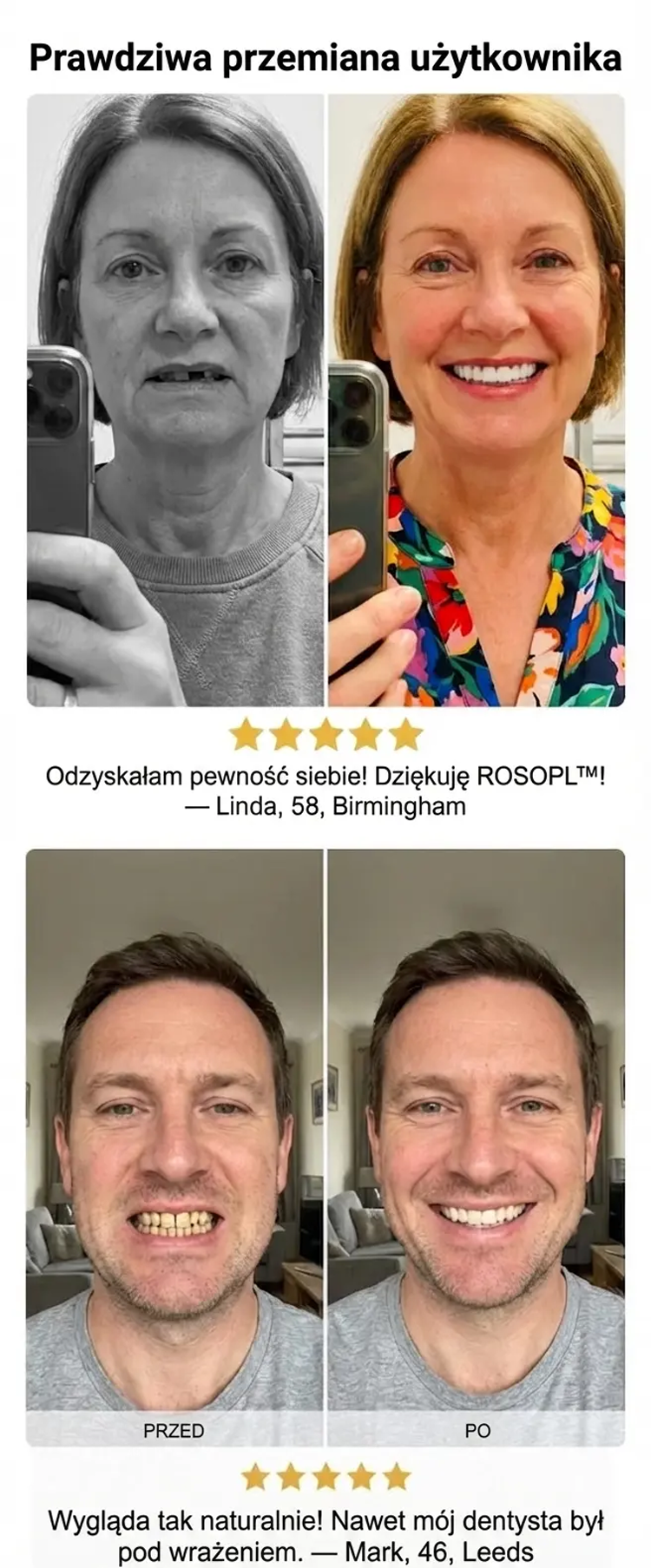 🦷 Technologia uszczelniania próżniowego: Opatentowany silikon termoplastyczny tworzy trwałe uszczelnienie. Pożegnaj się z luźnymi protezami! 🍏 Precyzyjna siła zgryzu: Specjalnie zaprojektowana do twardych pokarmów. Ciesz się mięsem, orzechami i jabłkami bez obaw o problemy z ugryzieniem. 🧼 Samoczyszcząca powierzchnia: Nanopowłoka antybakteryjna zapobiega żółknięciu i nieświeżemu oddechowi przez ponad 30 dni. 💃 Efekt liftingu przeciwstarzeniowego: Zaprojektowana, aby wypełnić zapadnięte policzki i wyeliminować bruzdy nosowo-wargowe. 🗣️ Wyraźna mowa: Mów, śpiewaj i śmiej się naturalnie i płynnie — koniec z trudnościami w mówieniu spowodowanymi przez protezy. 🔥 Edycja limitowana: Odzyskaj pewność siebie, zanim ceny wzrosną dwukrotnie!