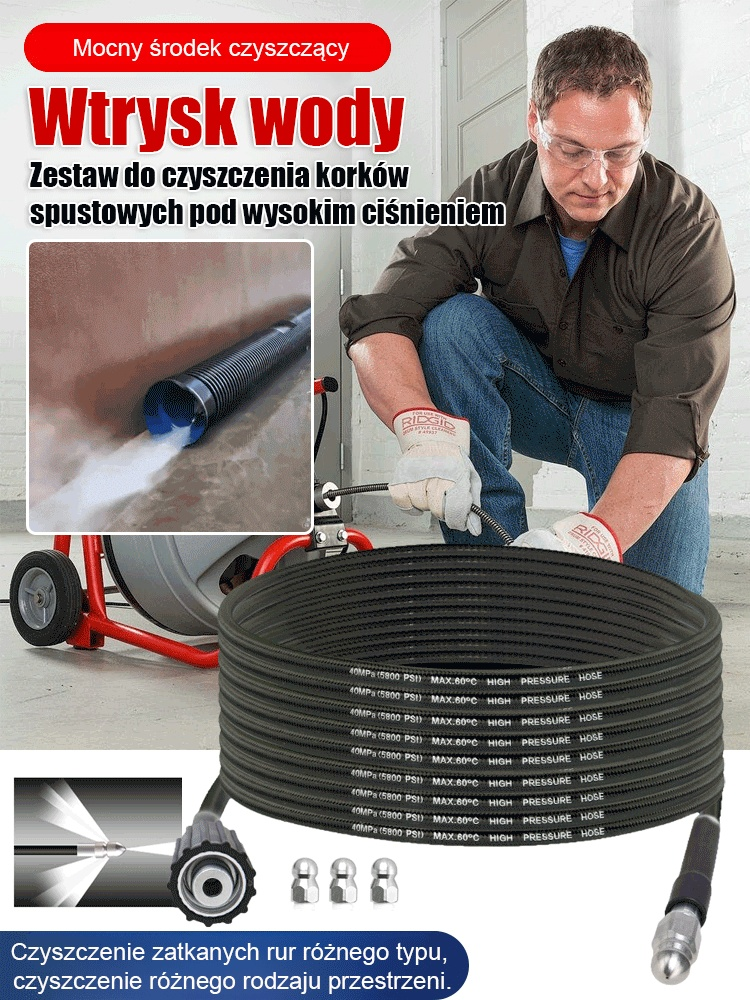 Profesjonalny zestaw do udrażniania rur z dyszą "Jednym Ruchem Czyste"