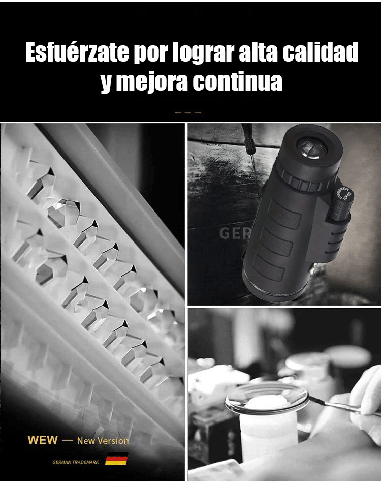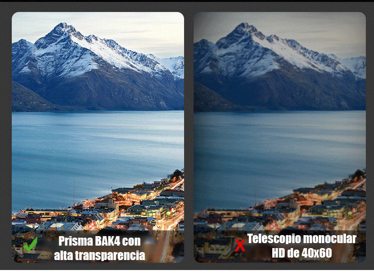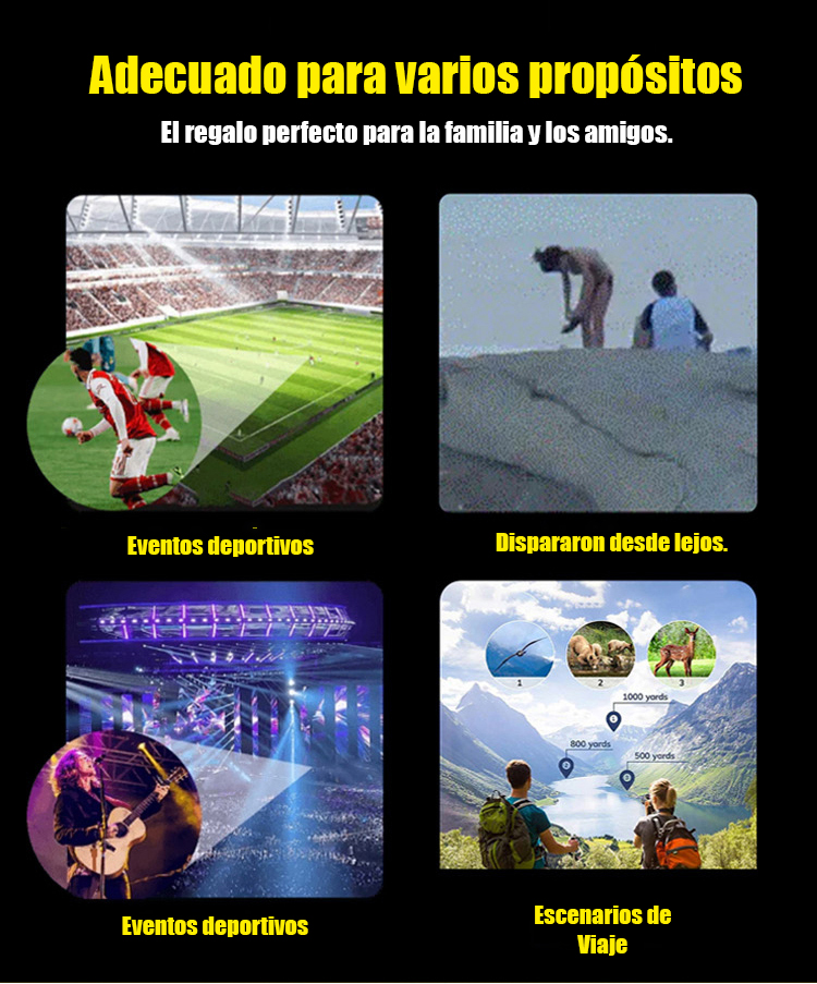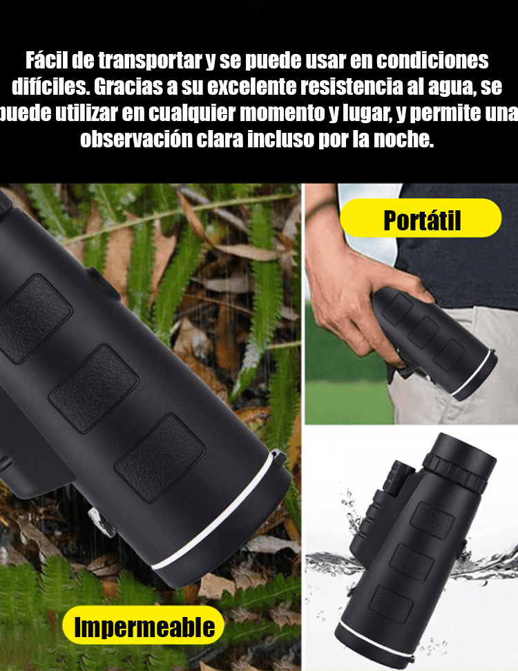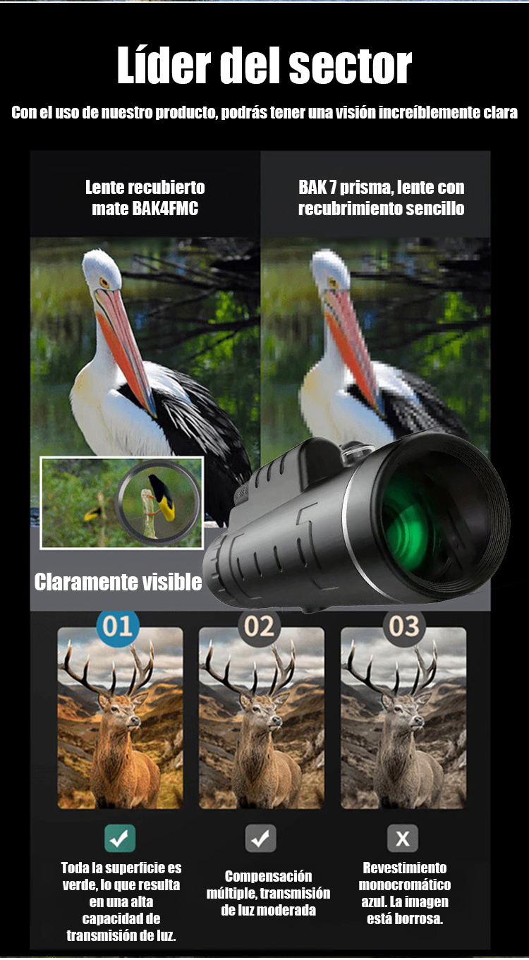 Con un aumento alto de 16x combinado con una lente objetivo de gran apertura de 52 mm, acerca claramente a sus ojos plumas de aves distantes, texturas arquitectónicas e incluso detalles del cielo estrellado, remodelando su escala visual.Transfórmate instantáneamente en un "teleobjetivo para tu teléfono", tus binoculares portátiles también pueden ser una cámara de alta definición.