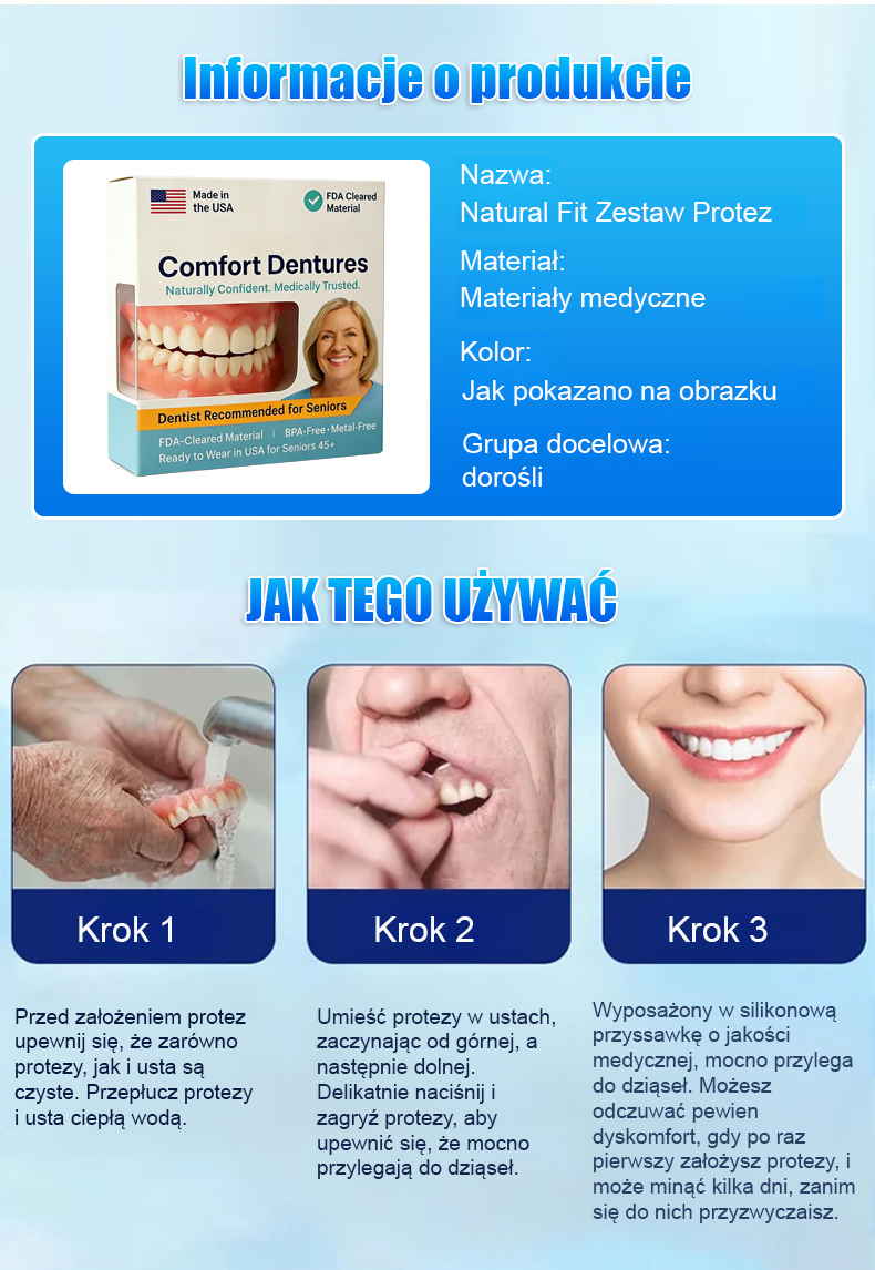 【Zdobywca Nagrody Edisona】Naturalnie dopasowany zestaw protez dentystycznych