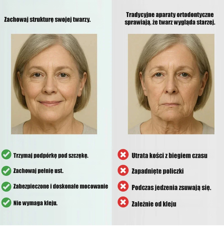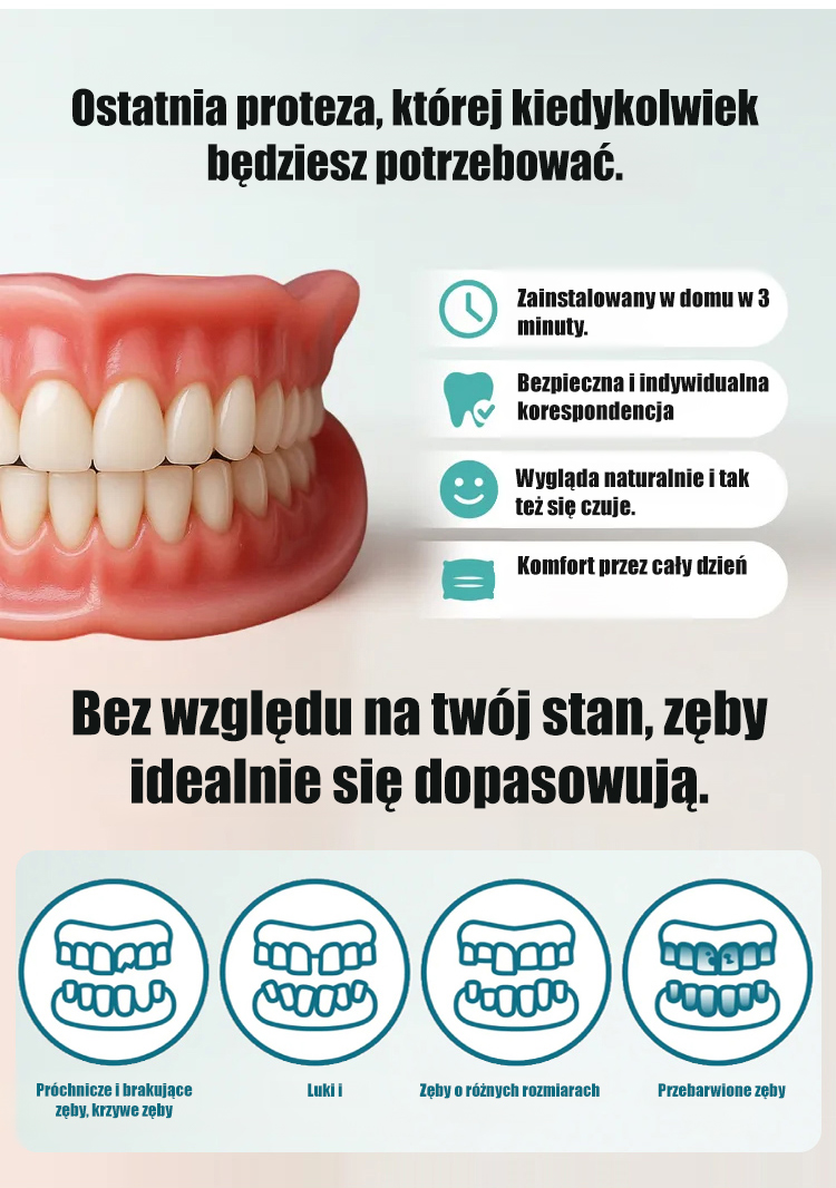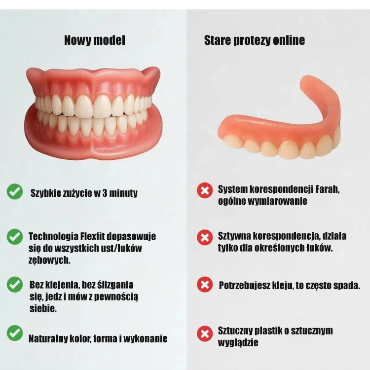 Komfortowe, naturalnie przylegające nakładki na górne i dolne zęby