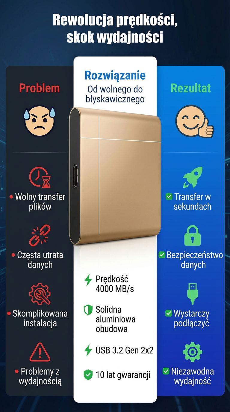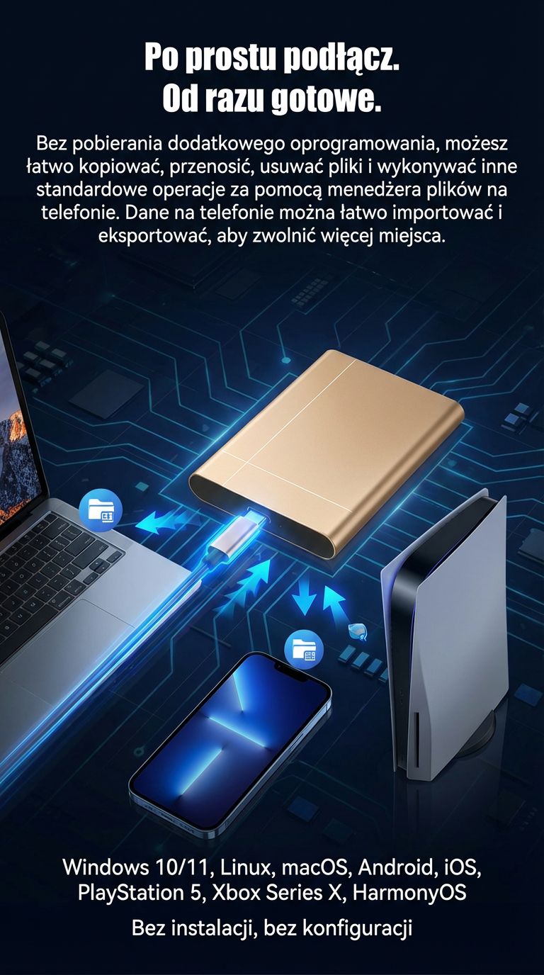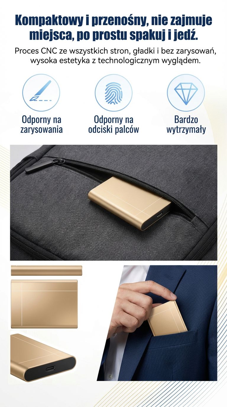 【Uniwersalny dla telefonów i komputerów】Wysokiej prędkości przenośny dysk SSD