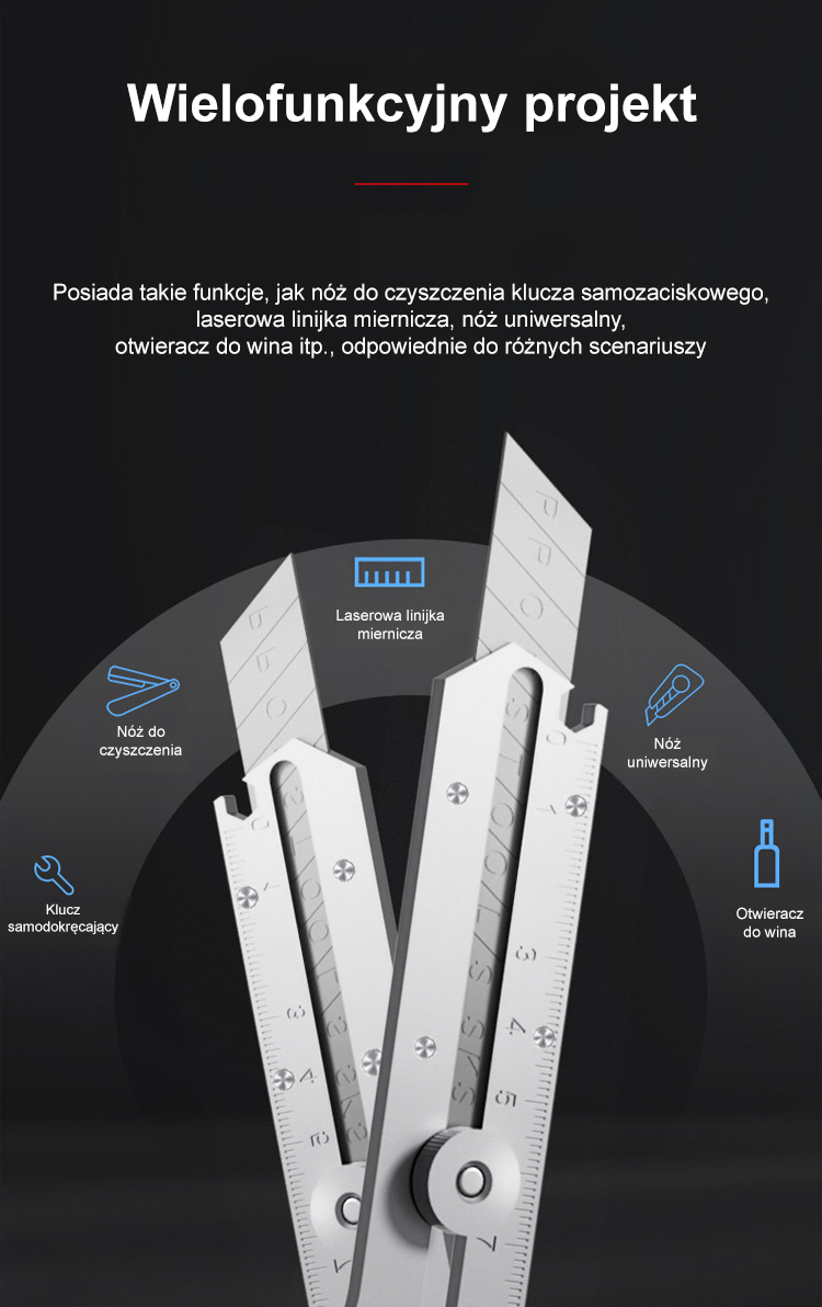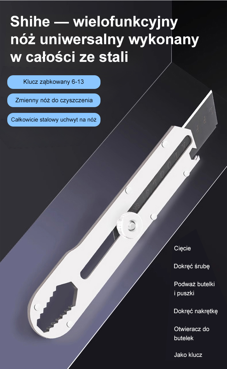 13-w-1 wielofunkcyjny nóż techniczny, wykonany w całości ze stali, odporny na korozję i trwały