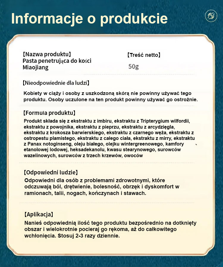 【Ulga w mięśniach i ulga w kościach Szybka ulga w bólu】 Krem kostny Miao Jiang
