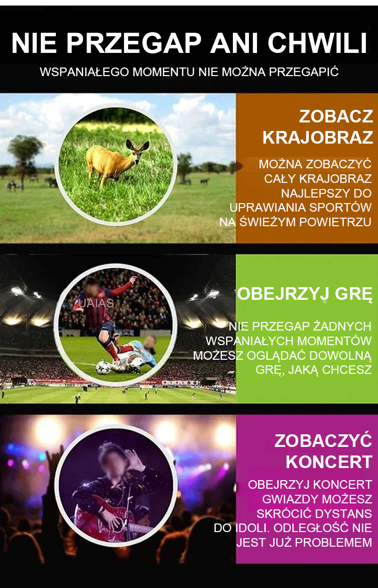 Ze względu na lawinowy wzrost zamówień, produkty będą sprzedawane na zasadzie 'kto pierwszy, ten lepszy'! Przenośna lornetka w wysokiej rozdzielczości