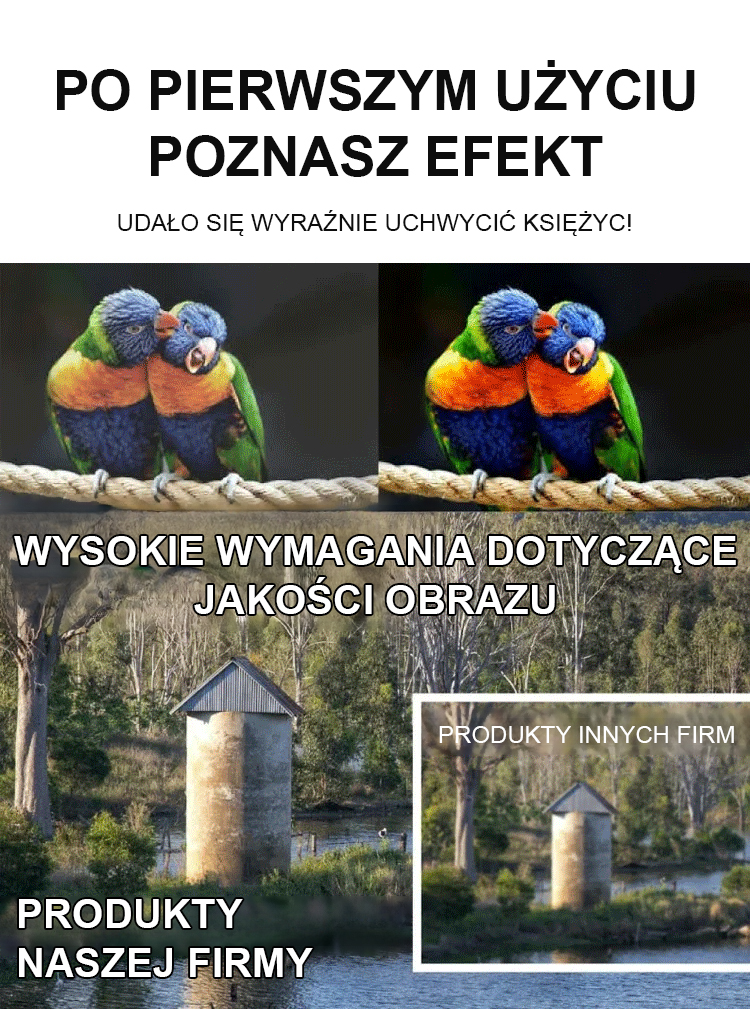 ✅ Nawet z odległości 8 kilometrów możesz wyraźnie uchwycić krajobrazy i ludzi, bez rozmycia lub zniekształceń – jakby byli tuż przed Tobą!