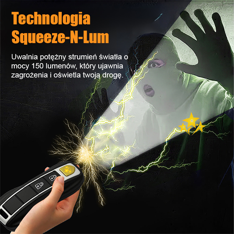 Wielofunkcyjna latarka do samoobrony z brelokiem do kluczy.