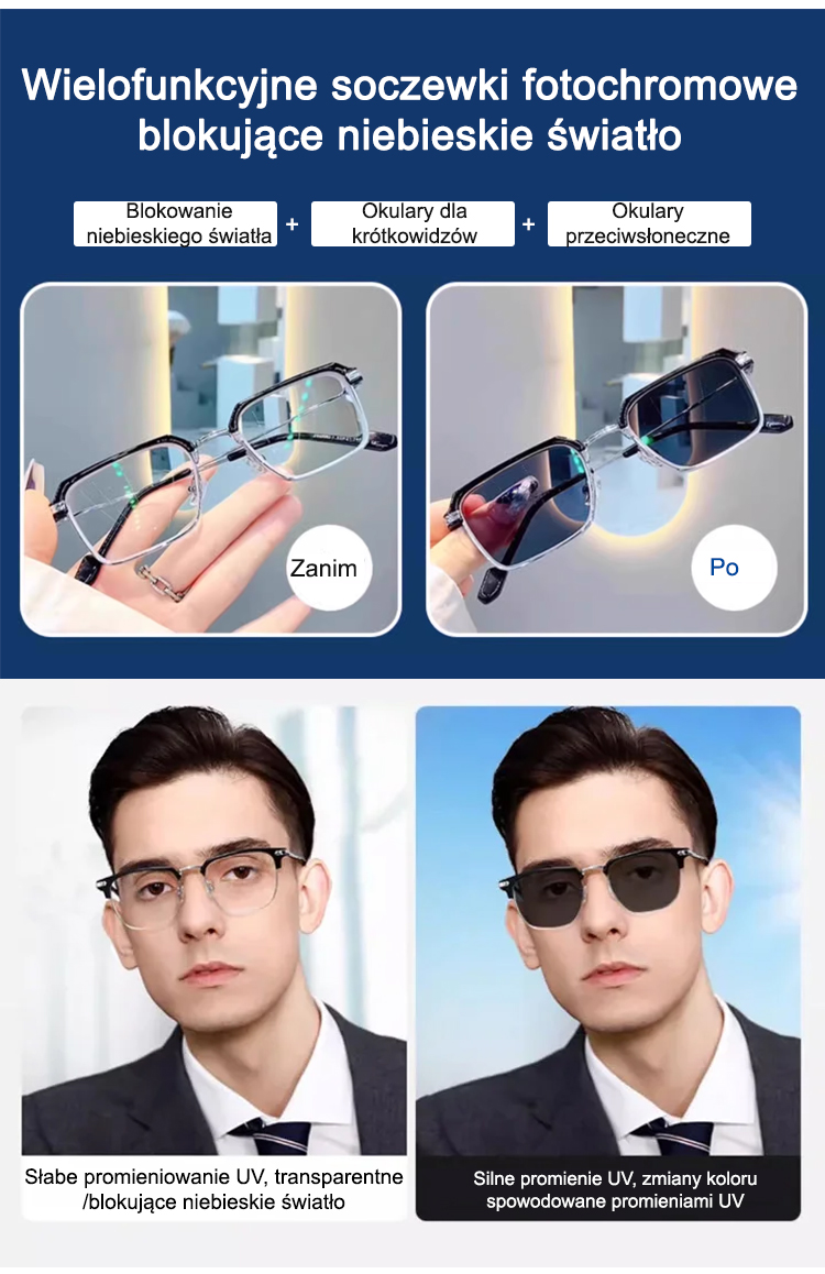 Automatycznie dostosowuje się w zakresie od 0 do 700 stopni i blokuje 99% szkodliwego krótkofalowego światła niebieskiego. Idealne do czytania i chodzenia.